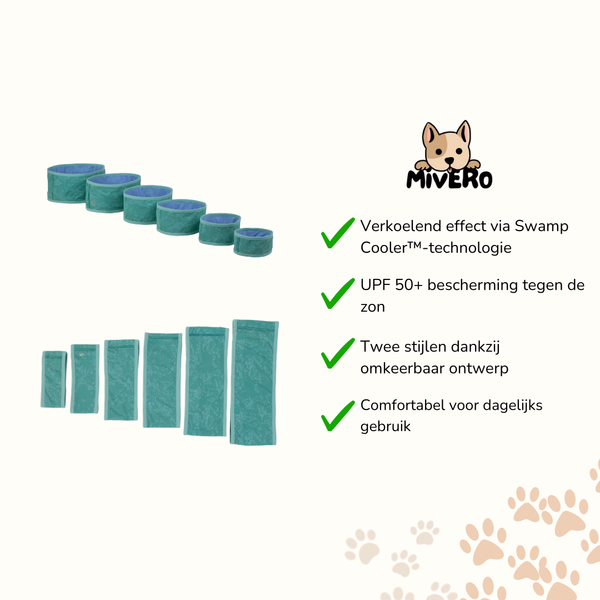 Help jouw hond verkoeling én bescherming te bieden tijdens warme dagen met de Flufz™ Verkoelende UV-Hondennekband. Deze stijlvolle, omkeerbare nekband zorgt voor directe afkoeling én beschermt de gevoelige nek tegen schadelijke UV-stralen. Simpelweg natmaken, omdoen en je hond is klaar voor elk zomers avontuur!